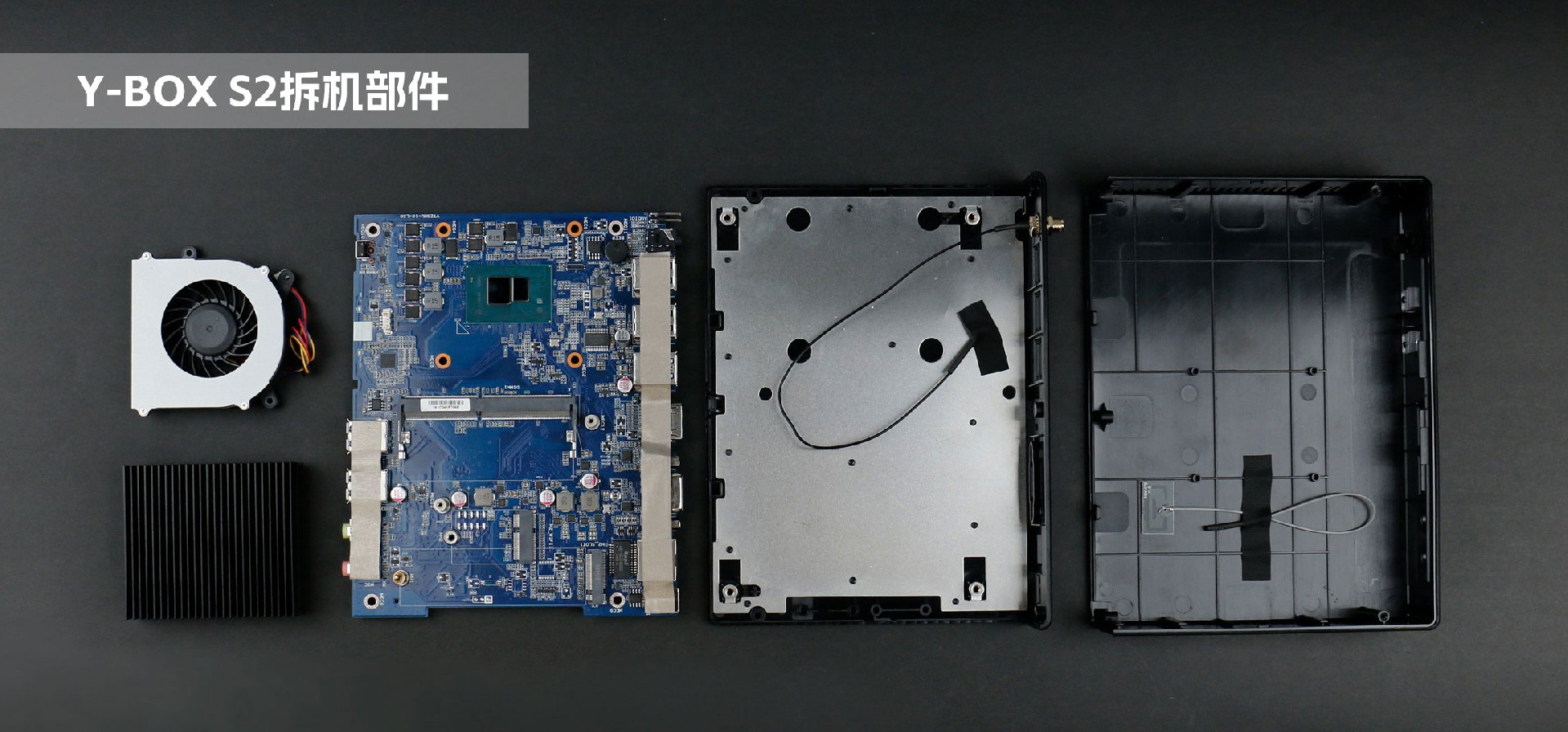 三亿(集团)体育桌面云终端Y-BOX S2机壳由两片式塑胶壳组合而成,整机由上至下主要分为三个部分:顶部外壳、内部主板、底部外壳。底部外壳内附一层铝板防静电,以防主板被静电损坏。主板处理器顶部安装一体式铝板鳍片,并涂抹一层散热膏用于导热,提高散热强度。同时,主板中部安装强劲的风扇用于散热,降低内存与硬盘读取时受温度的影响,提高运行稳定性。
