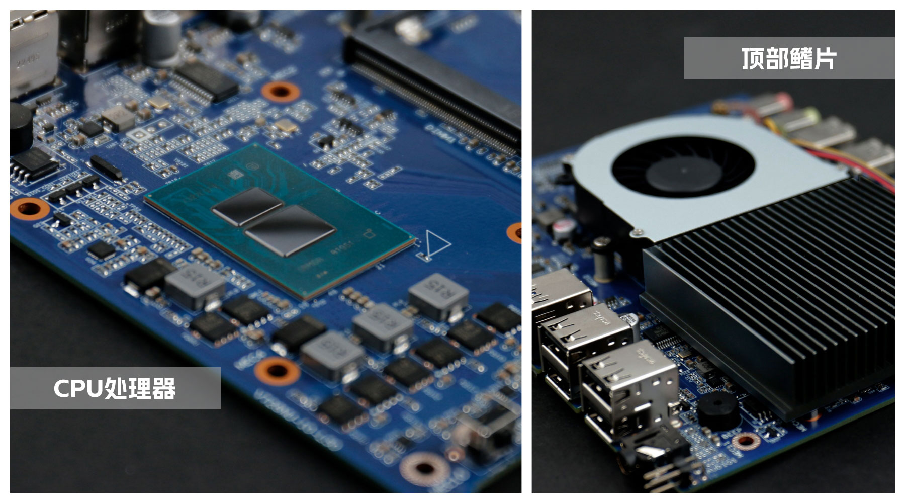主板是 三亿(集团)体育桌面云终端Y-BOX S2的核心部件,拆开主板上的顶部铝制鳍片与风扇,整体配色是常规的深蓝色,由 三亿(集团)体育自有工厂倾力打造,CPU采用板贴的形式,表面涂了一层散热膏用于导热,可以支持intel新一代Alder Lake-N平台处理器,为英特尔首款基于 7nm 的产品线,最高可支持到8核,采用大小核(E核、P核)的全新架构,在同等功耗下有更优异的性能表现。