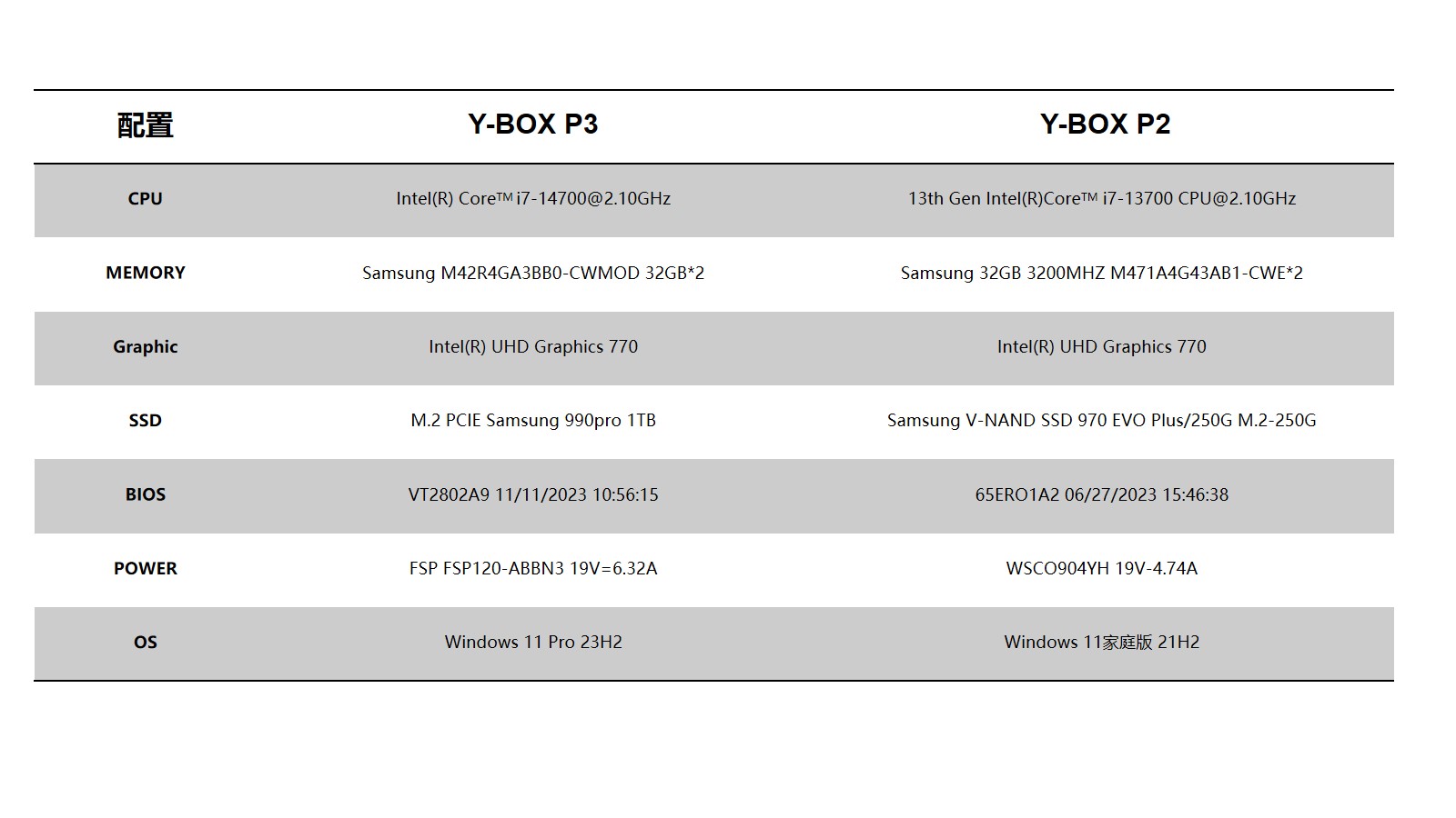 作为Y-BOX P2的迭代产品, 三亿(集团)体育选取了以下配置,将Y-BOX P3与Y-BOX P2进行对比分析,结论先行:两款产品跑分数据表示,Y-BOX P3的跑分数据及稳定性能明显领先Y-BOX P2。