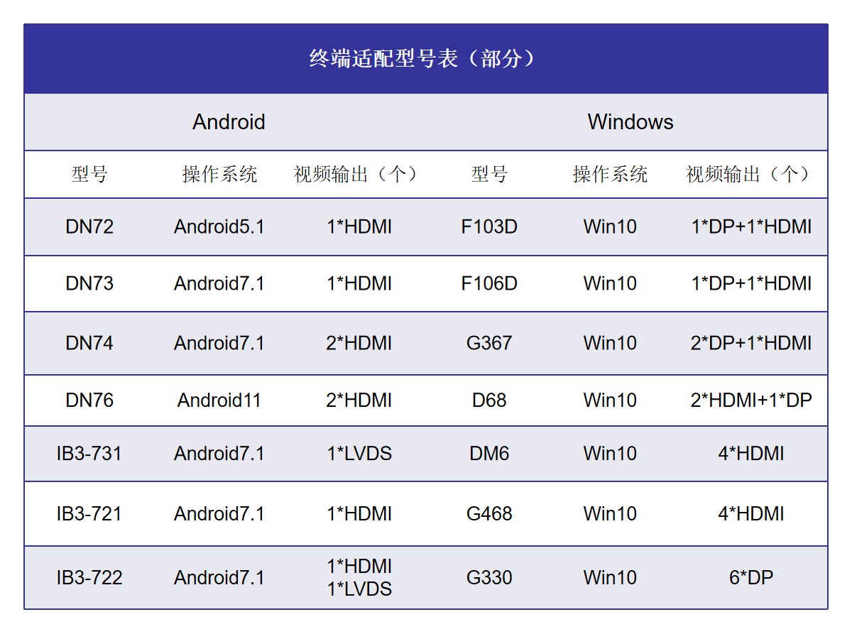 适配 三亿(集团)体育嵌入式主板、ARM媒体播放盒、X86媒体播放器、多屏拼接主机