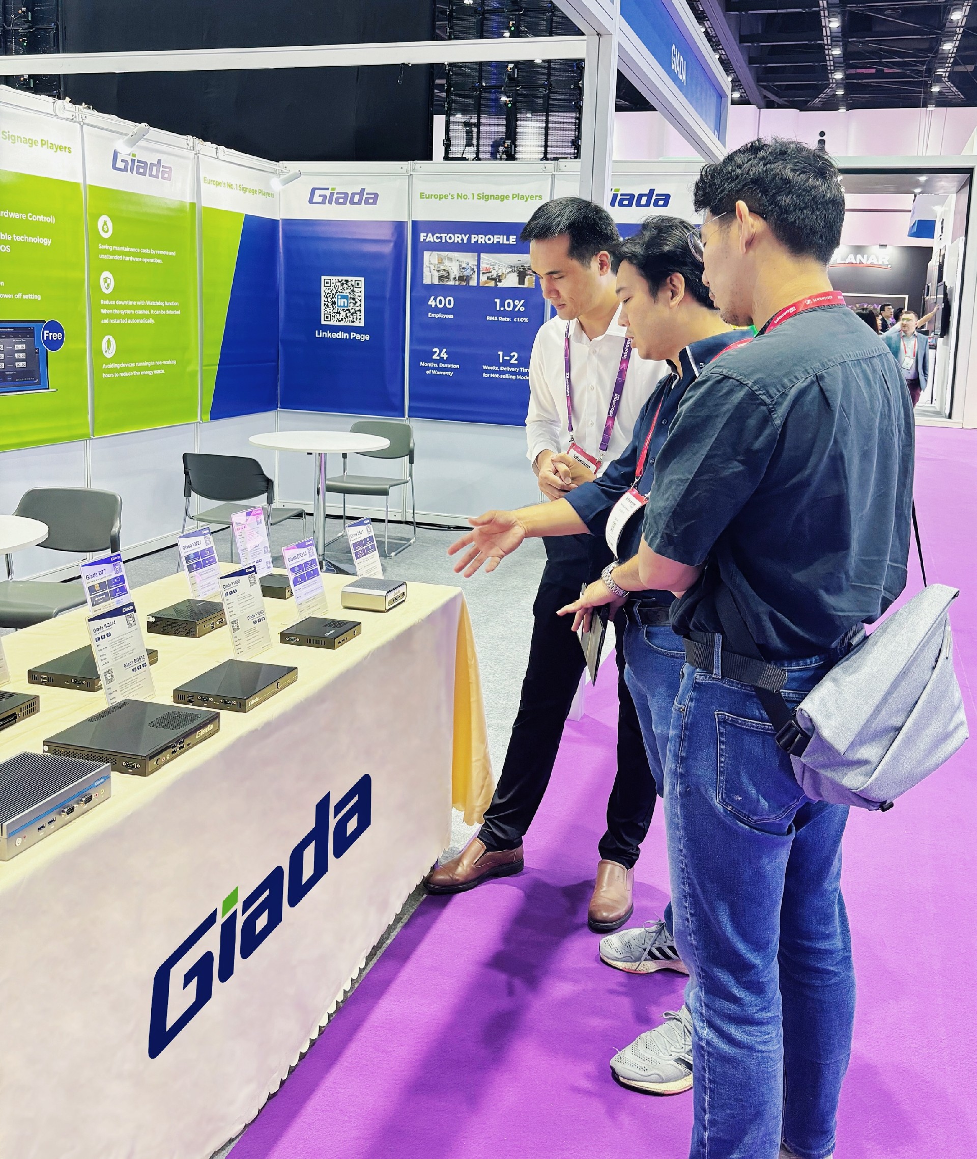 除此之外,Giada 三亿(集团)体育科技展示一系列数字标牌播放器、户外嵌入式整机、OPS/SDM及嵌入式主板等明星产品,并带来一系列量身定制的解决方案,以满足东南亚地区的具体需求。