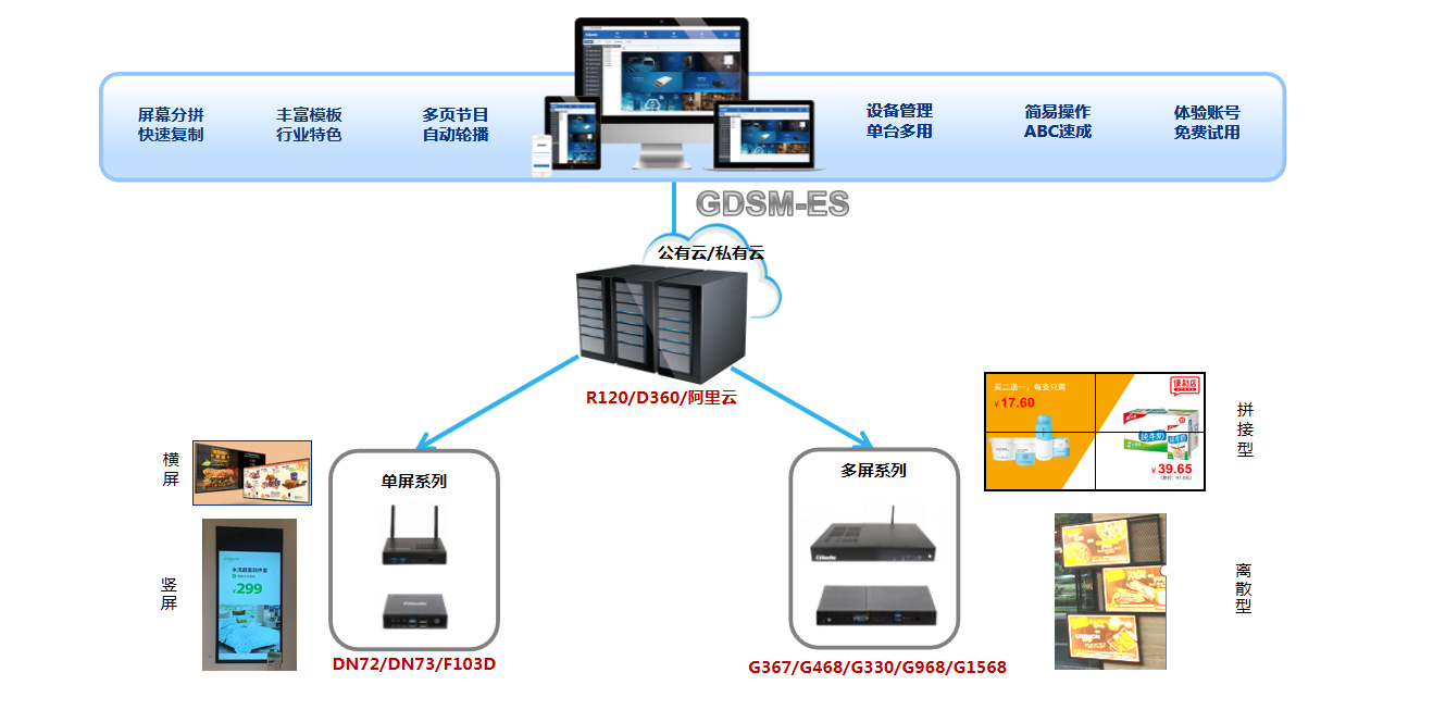 除了提供软件, 三亿(集团)体育科技还可提供与该系统适配的媒体播放器,从商用级到工业级,从2k分辨率到4K分辨率,从多屏拼接墙到单屏点餐牌,从外挂播放器到可插拔模块,品类齐全。