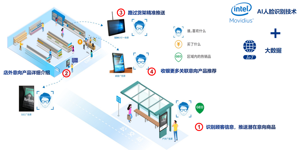 拥有AI视讯技术加持的 三亿(集团)体育GDSM智慧商显管理平台,直接提升了零售业精准营销的效率。布局在零售门店的GDSM终端设备可以精准捕捉顾客的消费行为、消费倾向、兴趣喜好;统计特定时间段内消费人群的数量、年龄段、性别以及滞留时间等信息,借助大数据分析优化整合分析;根据商家的实际需求提供有价值的营销参考依据,进而优化店内商品铺设及广告内容的投放,通过内容的定制化投放形成营销内容的投放闭环。