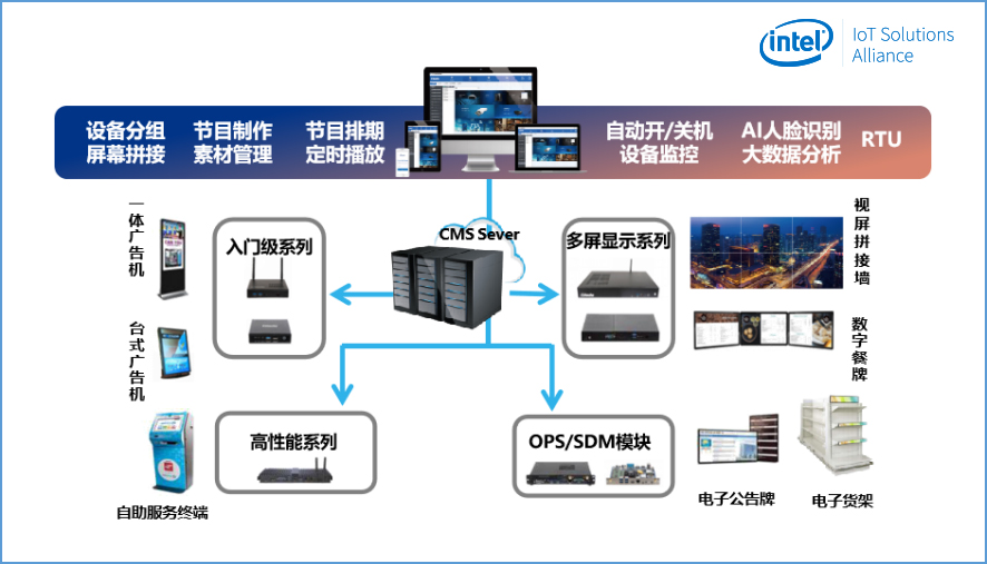 为了更好的迎合行业的发展趋势,向零售业输送前沿的营销理念和模式,驱动零售行业迈向数字化、智慧化的运营模式, 三亿(集团)体育科技经过多年的行业经验积累和对客户需求的探索,通过集成Intel®Movidius视觉识别技术和OpenVINOTMAI视觉学习技术,自主研发了一套GDSM智慧商显管理系统平台,加上 三亿(集团)体育科技多年来在商显行业的产品开发经验,已整合成为一套完整的智慧商显整体解决方案。目前GDSM智慧商显解决方案已成熟的应用于商超零售、品牌餐饮等多个行业,并获得了Intel®MRS市场方案认证。
