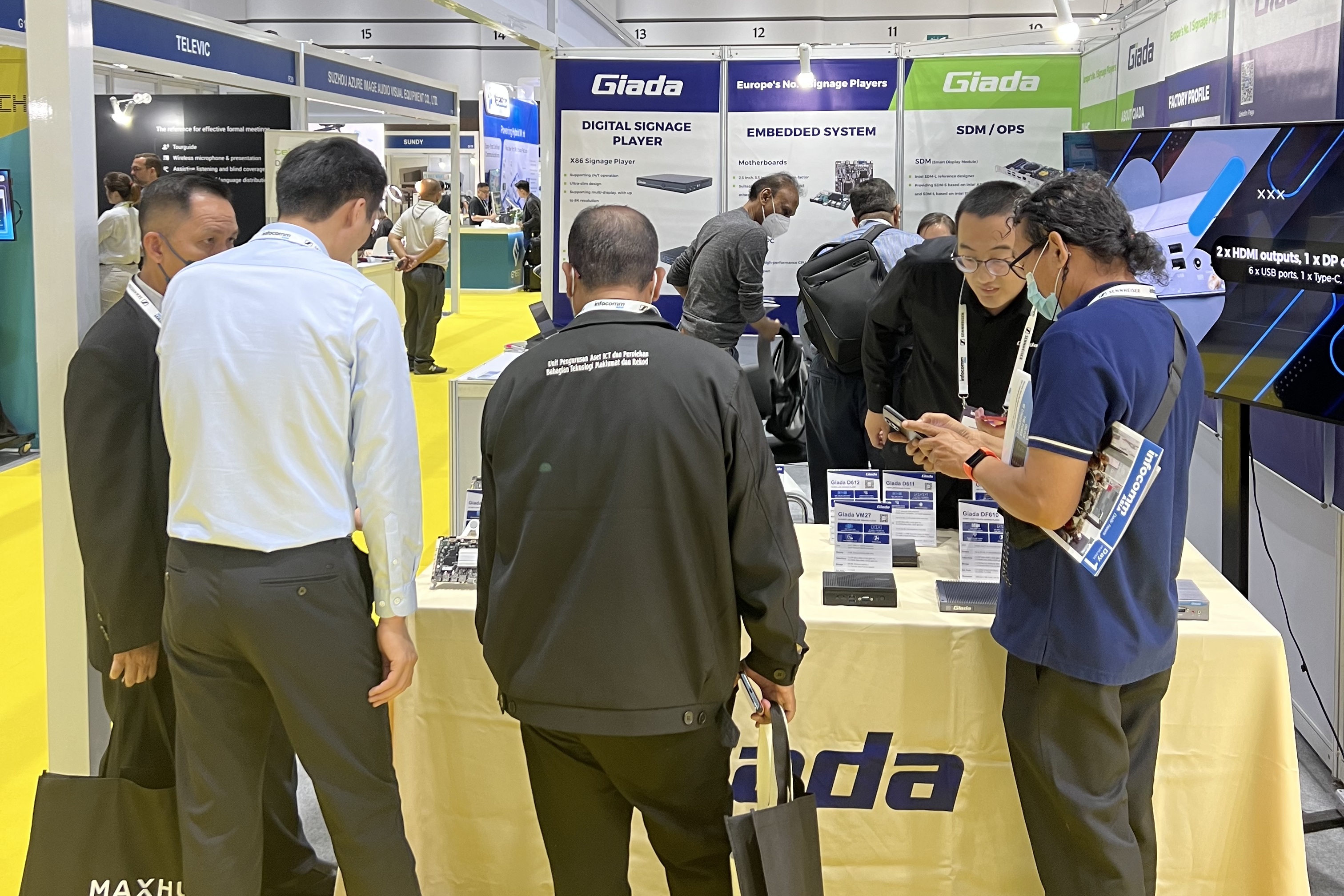 此次InfoCommAsia 2023展会,Giada 三亿(集团)体育科技携最新产品及方案亮相。致力于为全球企业客户解决智能化应用需求的 三亿(集团)体育,此次展会带来了数字标牌播放器、边缘计算机、OPS/SDM和嵌入式主板等的最新产品,并展示了一系列量身定制的解决方案,以满足泰国市场的具体需求,为亚太地区的数字化转型带来全新势能。展会期间,Giada的展台现场气氛火爆,展位人流络绎不绝!