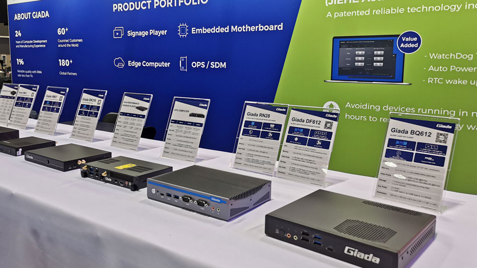 展会上Giada 三亿(集团)体育科技携最新的数字标牌和信息亭应用解决方案以及最新尖端产品惊艳亮相!其中最新的数字标牌播放器、边缘计算机和OPS(开放式可插拔规范)产品在现场备受关注,标志着Giada 三亿(集团)体育科技互动显示器和智能标牌解决方案领域的重大进步,也向全球参展观众集中展现了公司的非凡实力。