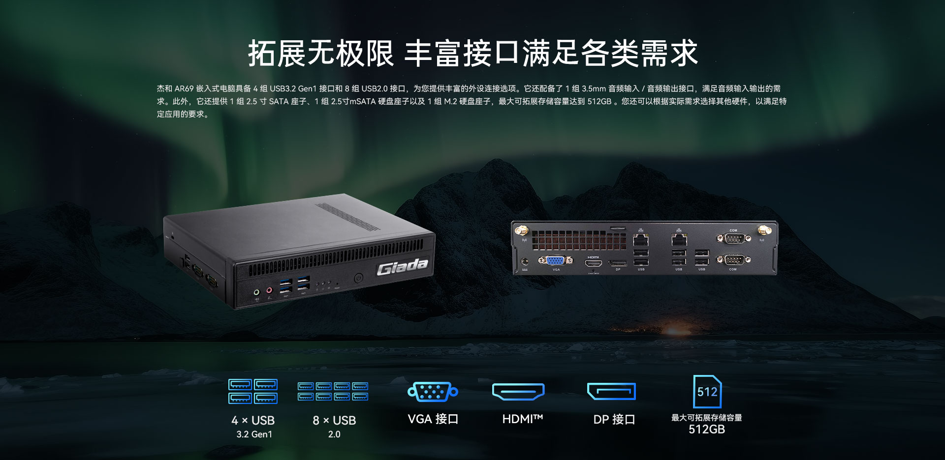 支持1 x VGA,1 x HDMI,1 x DP,支持4K视频输出