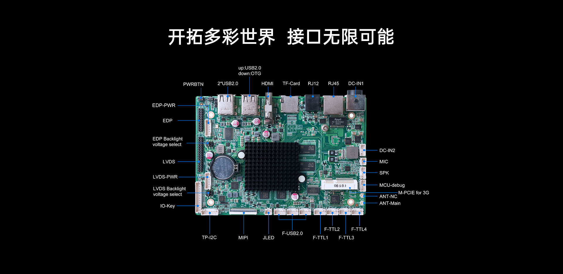 外部I/O | 接口 | 1 x HDMITM(Max. 4096 x 2160@60Hz) 1 x USB2.0(OTG),1 x USB2.0 1 x RJ45,1 x RJ12钱箱接口 1 x TF卡槽1 x 24V DC-IN航空座子接头 1 x Mini-PCIe for 3G/4G ,1 x SIM卡槽,板载Wi-Fi/BT 1 x 2-IN-1 Headset (AUDIO-OUT & MIC-IN) |